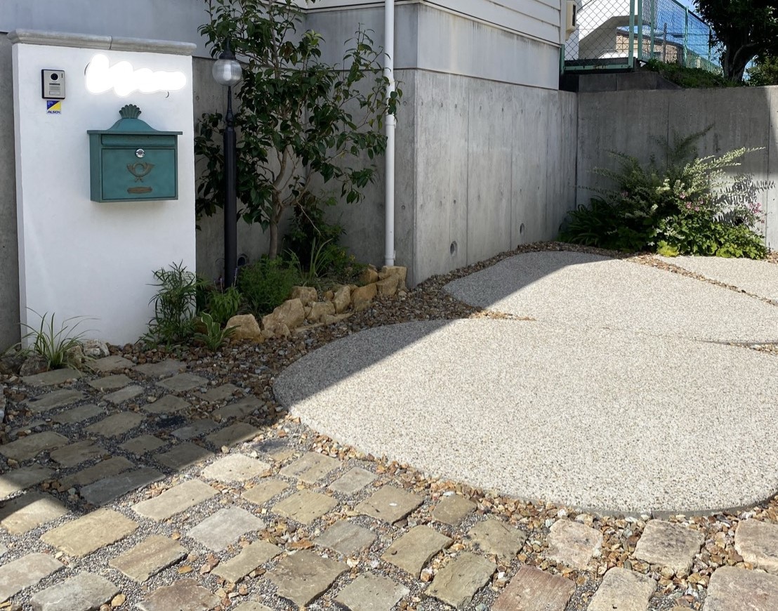 最近は、洗出しコンクリートをタイヤ痕の汚れ防止で希望される方が多いですが、