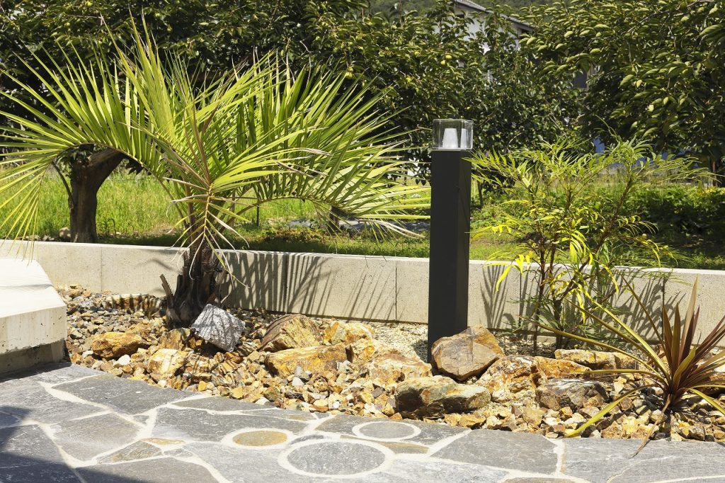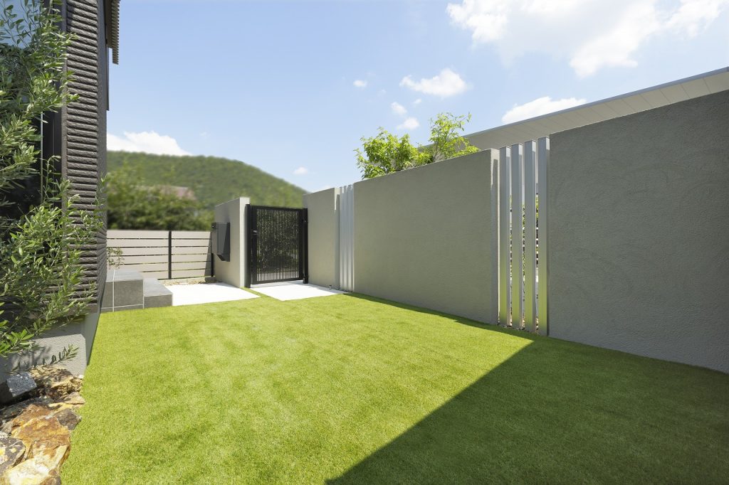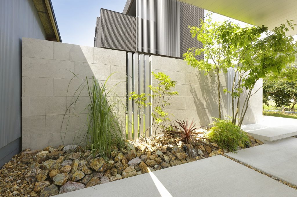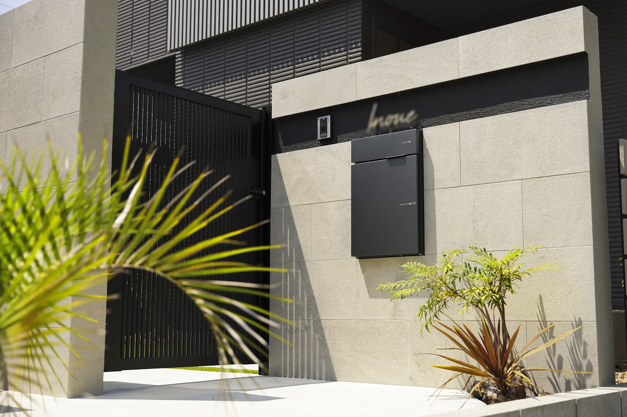 SCカーポート、タイル仕上げの門柱、目隠し壁、石畳みのアプローチ、タイルデッキなど 人気のアイテムを取り入れた誰もが憧れる外構デザインをご紹介いたします
