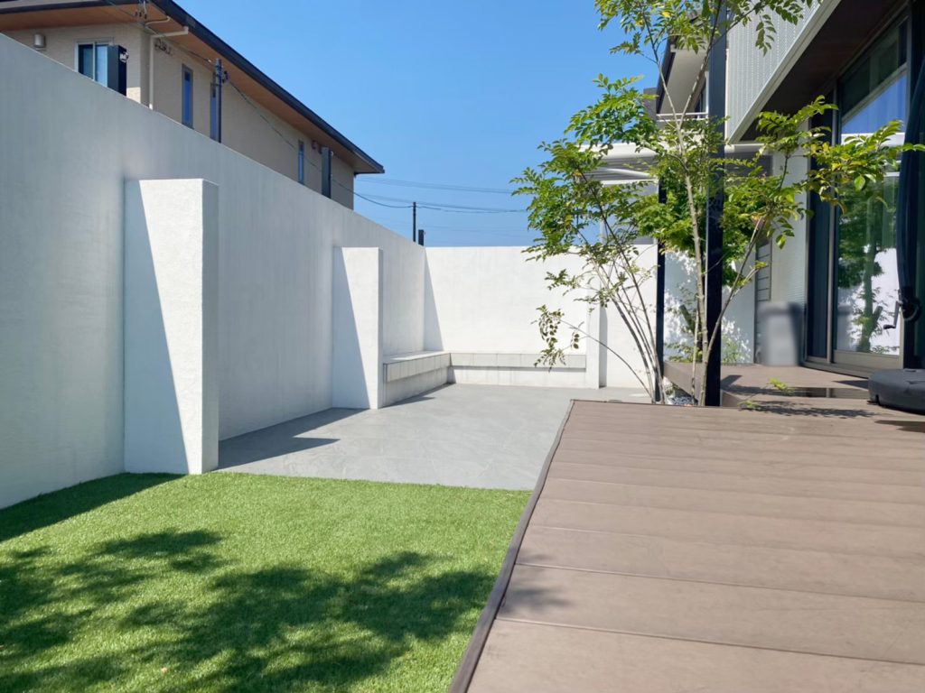 周囲が住宅地ということもあり、プライバシー確保のために目隠し壁を設置。