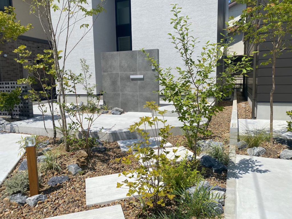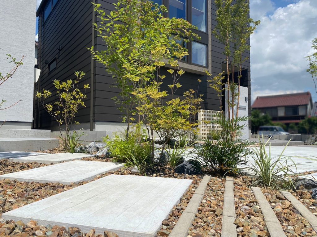 機能性にも配慮しながら、どこかやさしく落ち着いた雰囲気をまとった外構となっています。