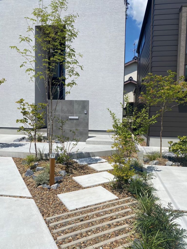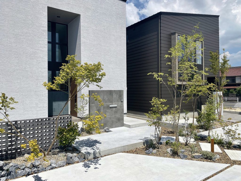 建物全体のトーンに合わせて、白を基調としたやわらかな外構デザインに仕上げました。