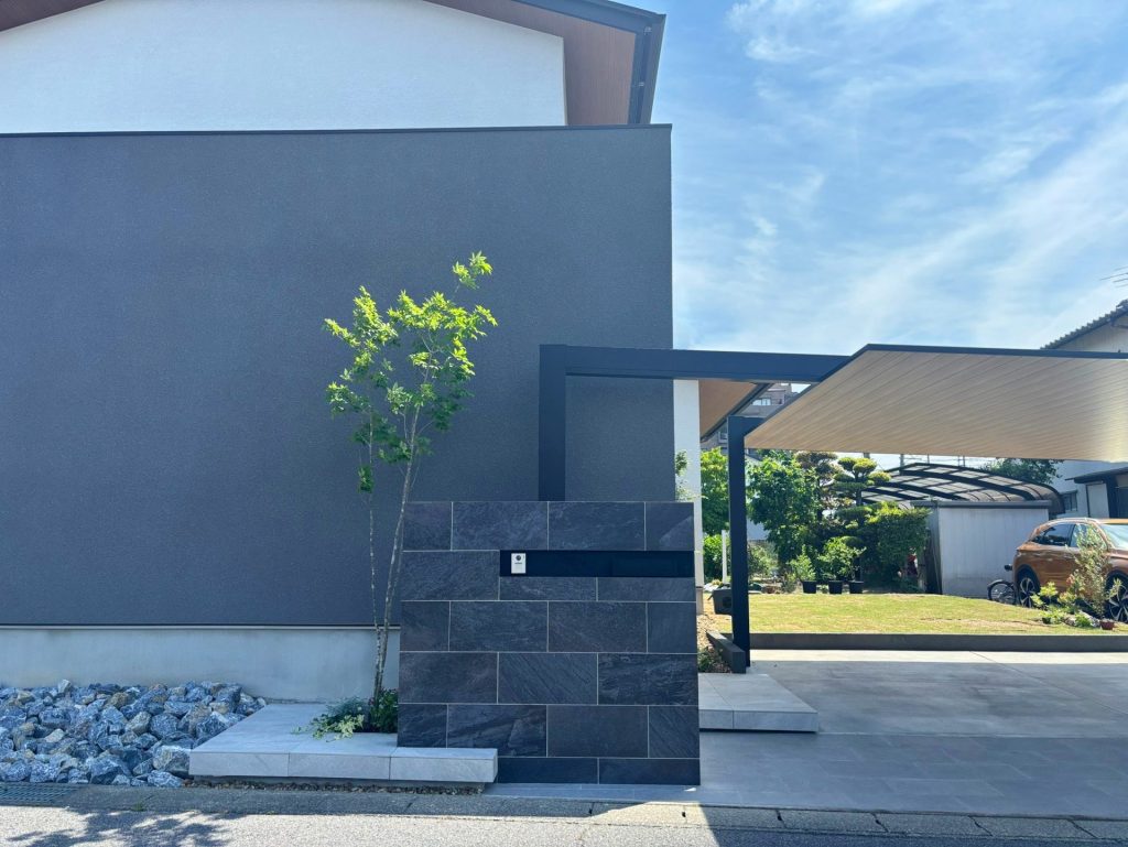 建物と調和するシンプルかつ上質なデザインが、外構全体を引き締めています。