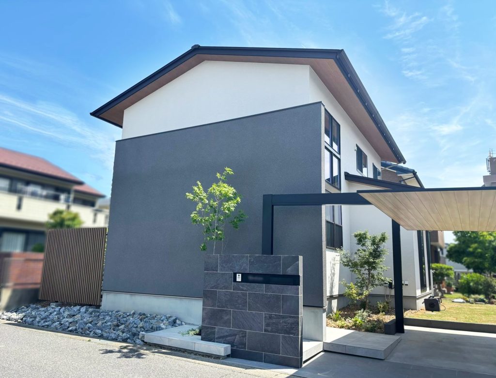 建物と調和するシンプルかつ上質なデザインが、外構全体を引き締めています。