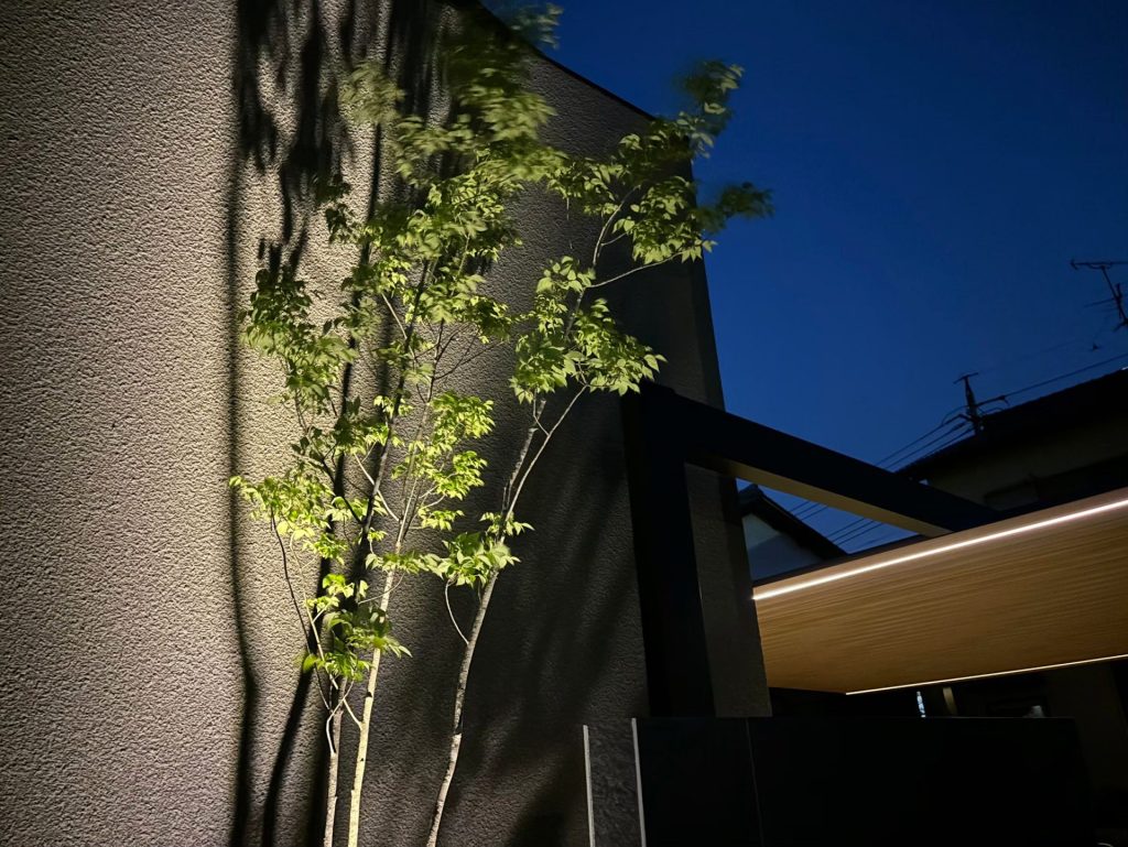 また、樹木の足元にはアップライトを配置し、植栽が夜の景観を引き立てるポイントに。