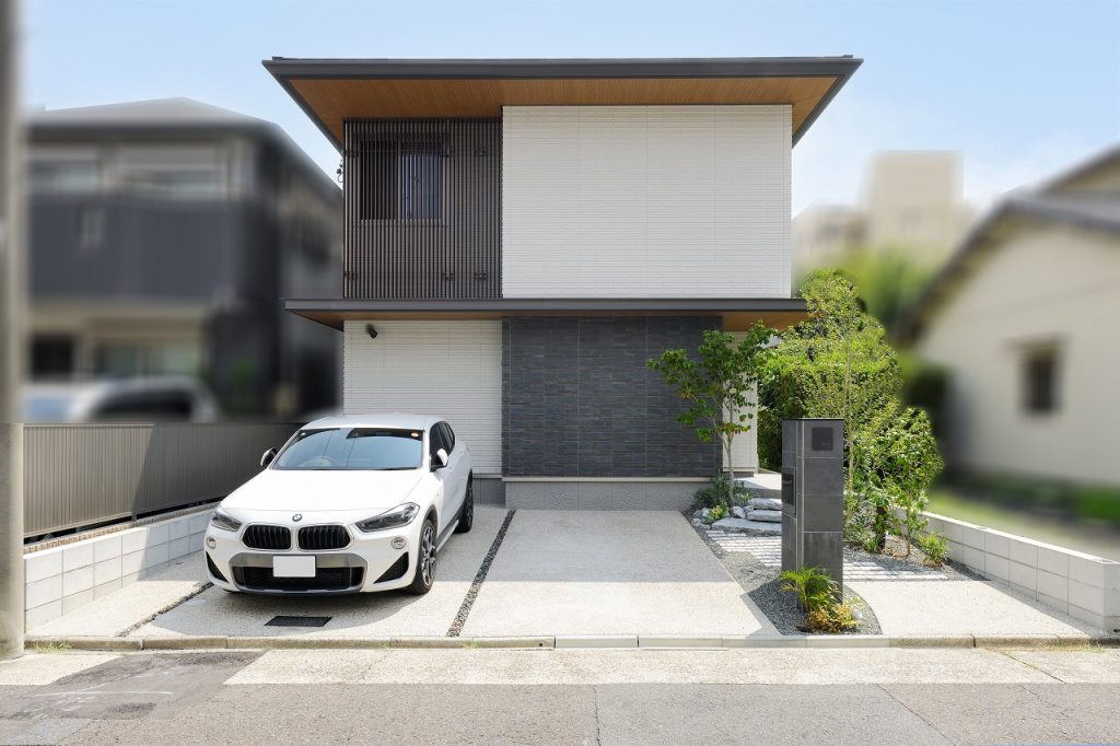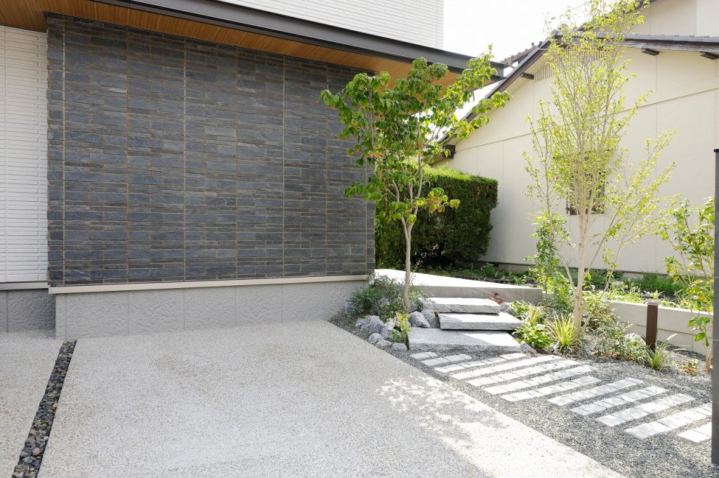和の落ち着きと現代デザインの洗練が融合した、上質なジャパンディ外構。 素材の組み合わせや色味の統一、細部へのこだわりが 非日常を感じられる上品な空間をつくりだしています。