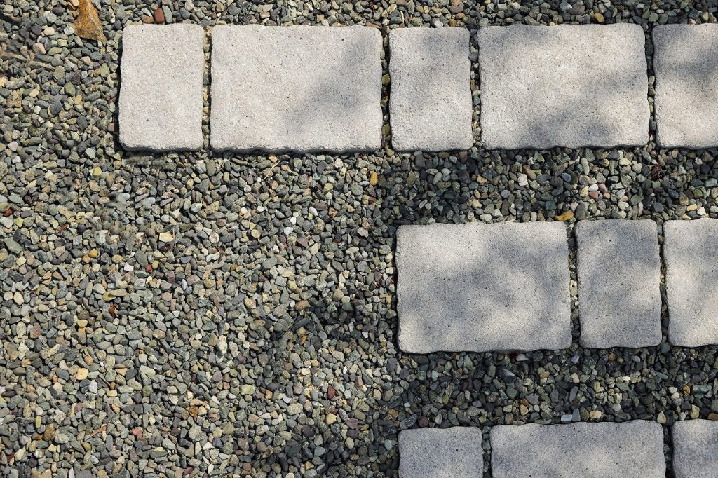 駐車場スペースは全面を洗出しコンクリートで仕上げました。