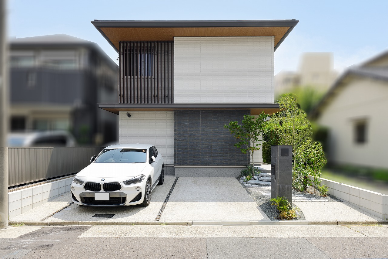 和の落ち着きと現代デザインの洗練が融合した、上質なジャパンディ外構。 素材の組み合わせや色味の統一、細部へのこだわりが 非日常を感じられる上品な空間をつくりだしています。