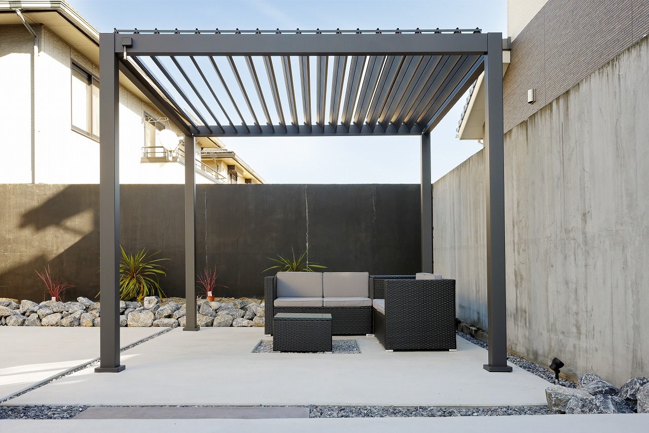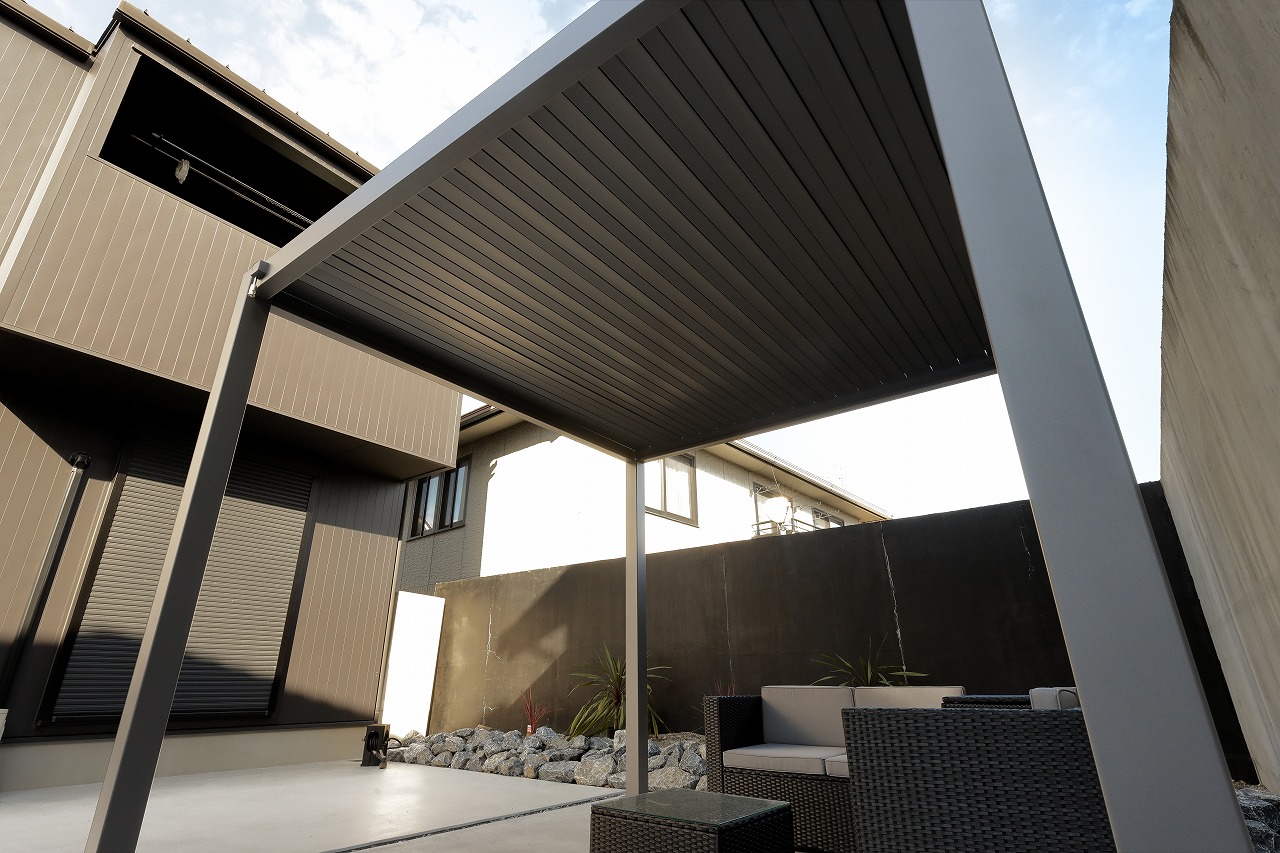 開閉式ルーフ「パティオムーヴ」で一年中快適に過ごせるテラス空間