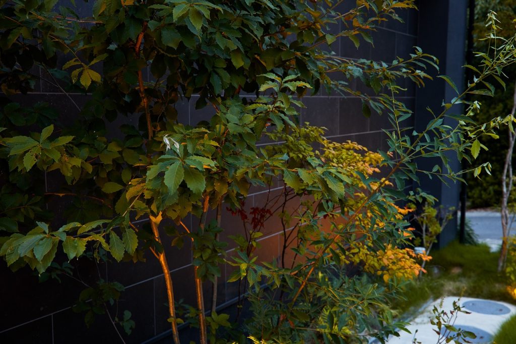 建物の外壁タイルは、庭のイメージに合わせてセレクト。