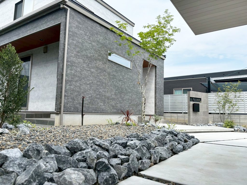 斜めデザインがおしゃれな外構