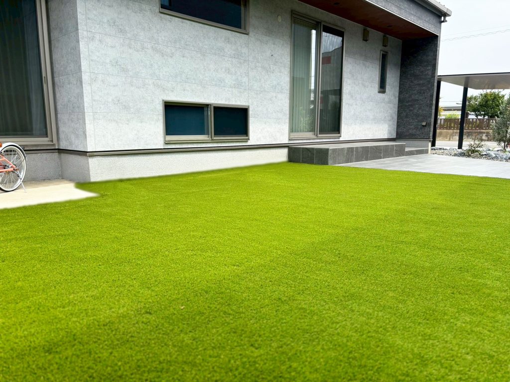 ふかふかとした芝の厚みと柔らかな毛並みで、裸足でも気持ちよく過ごせる空間に仕上がりました。