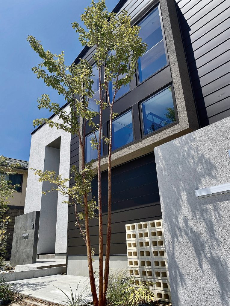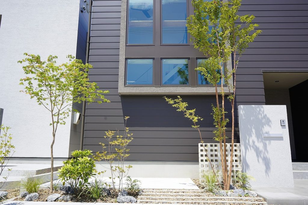 建物と外構それぞれの魅力が引き立つメリハリのあるデザインに仕上げています。