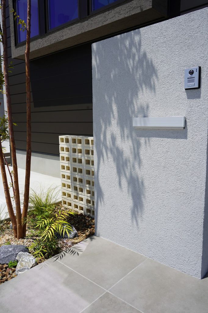 玄関ポーチには、存在感のある600角の大判タイルを採用しました。