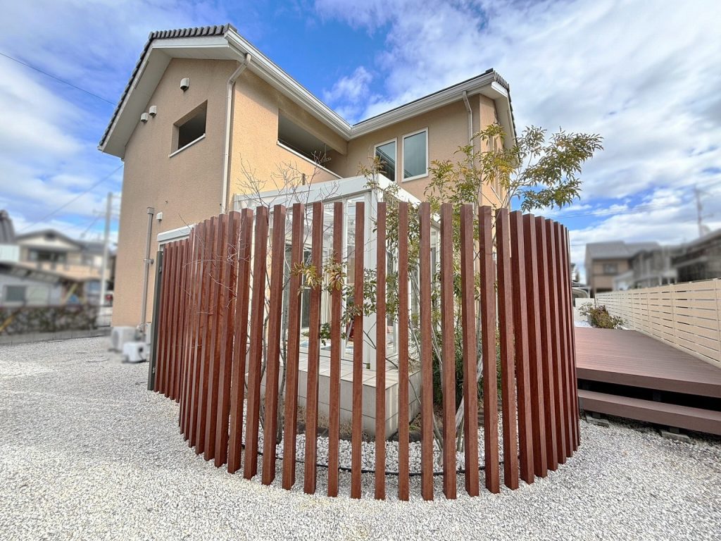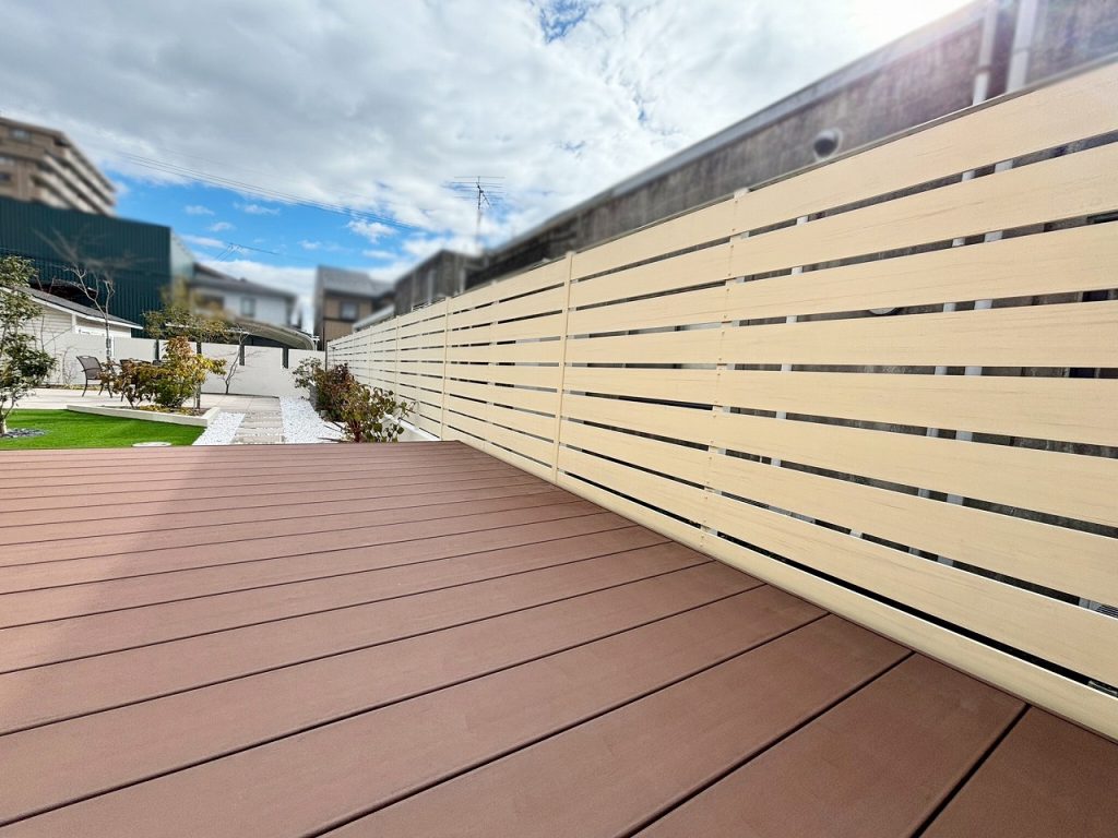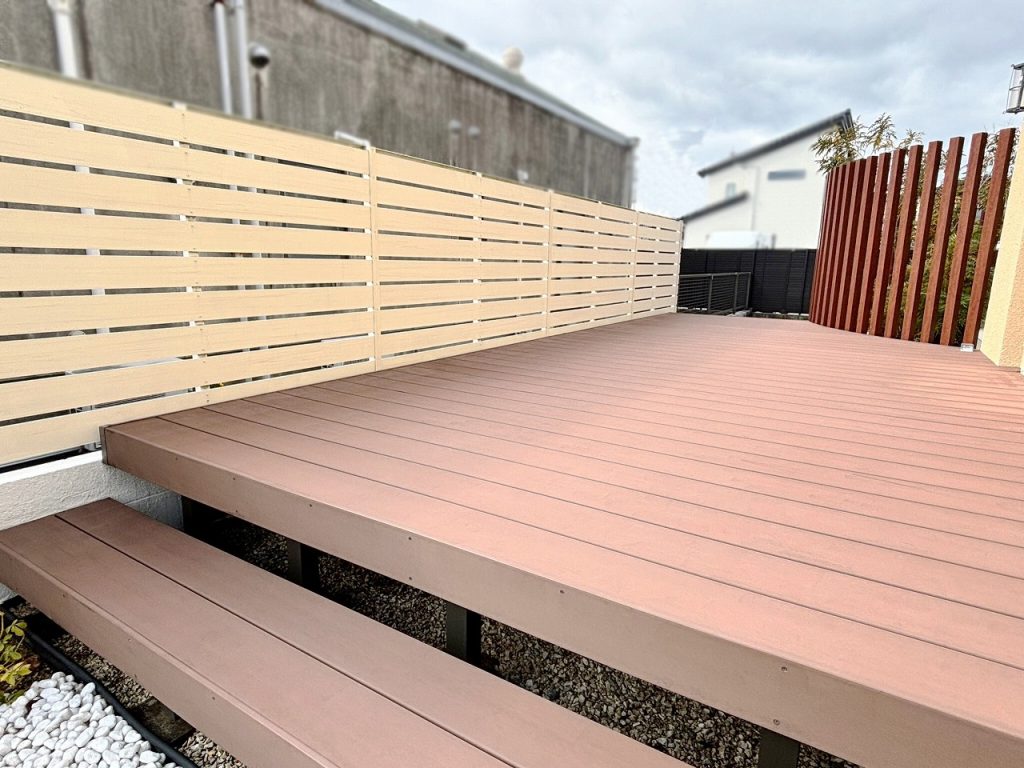 デッキと同じ素材を使うことで外構全体の統一感を演出しています。
