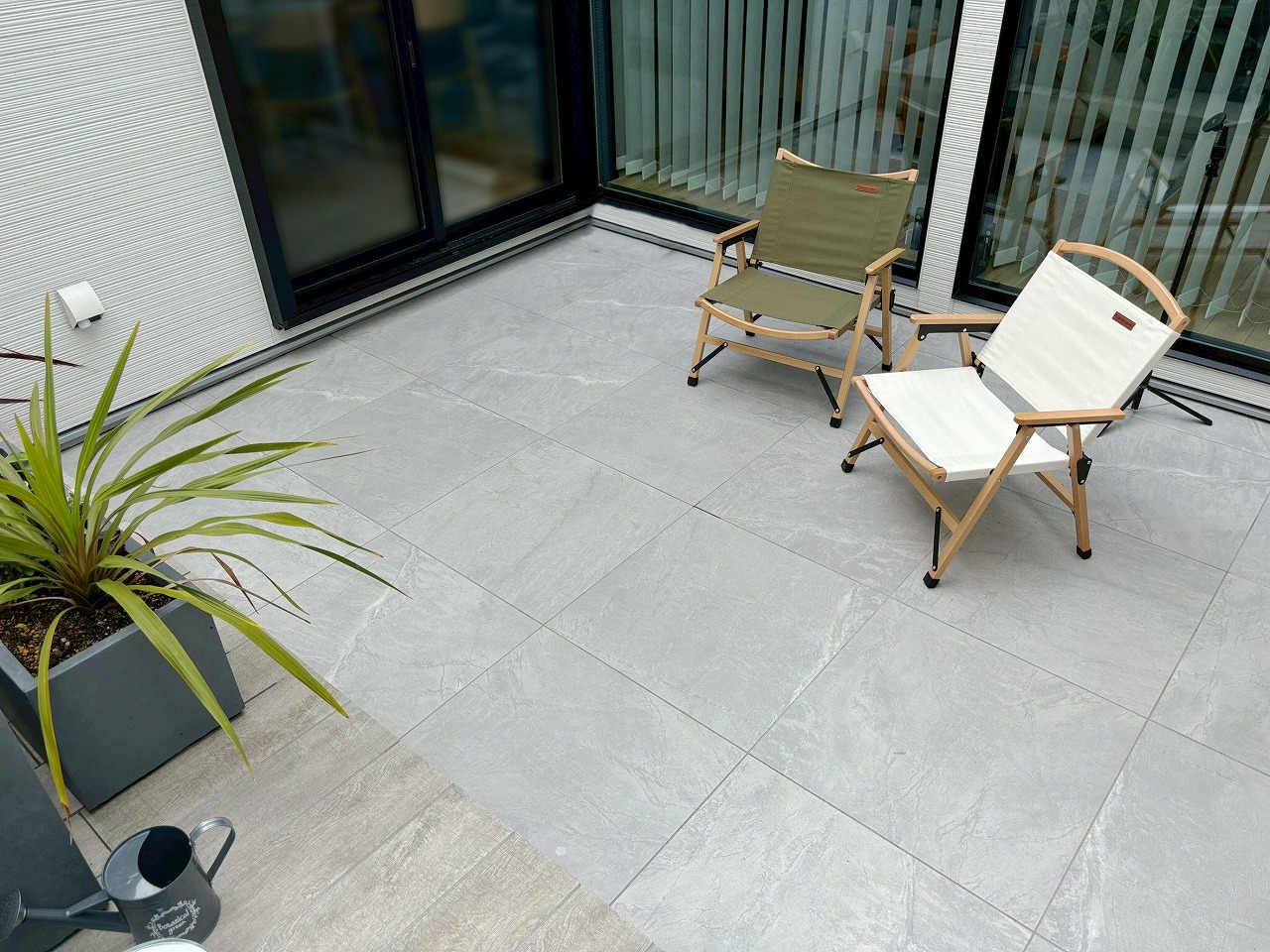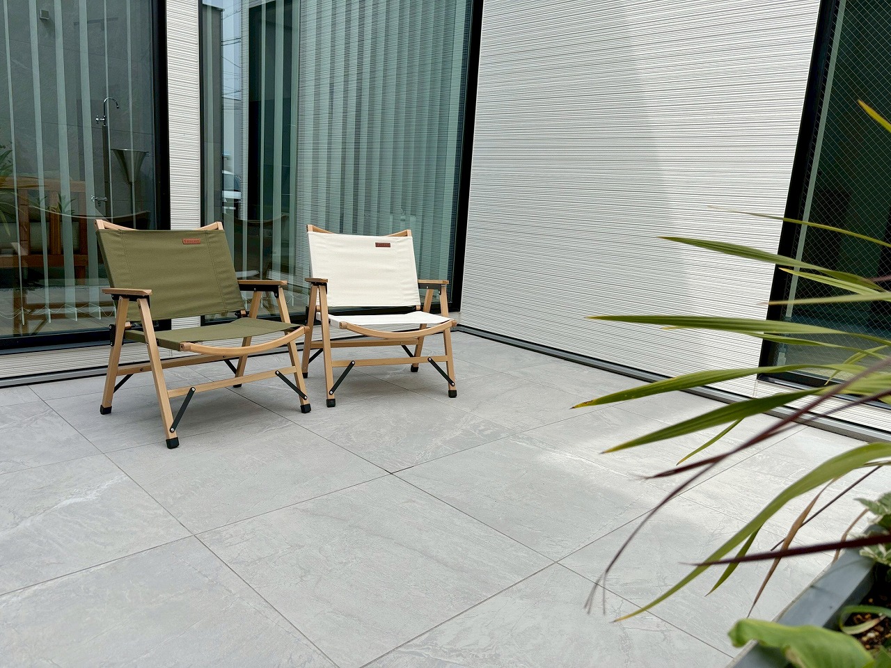 目隠し壁と同じ系統のタイルを採用することで、統一感のある中庭空間に仕上がりました。